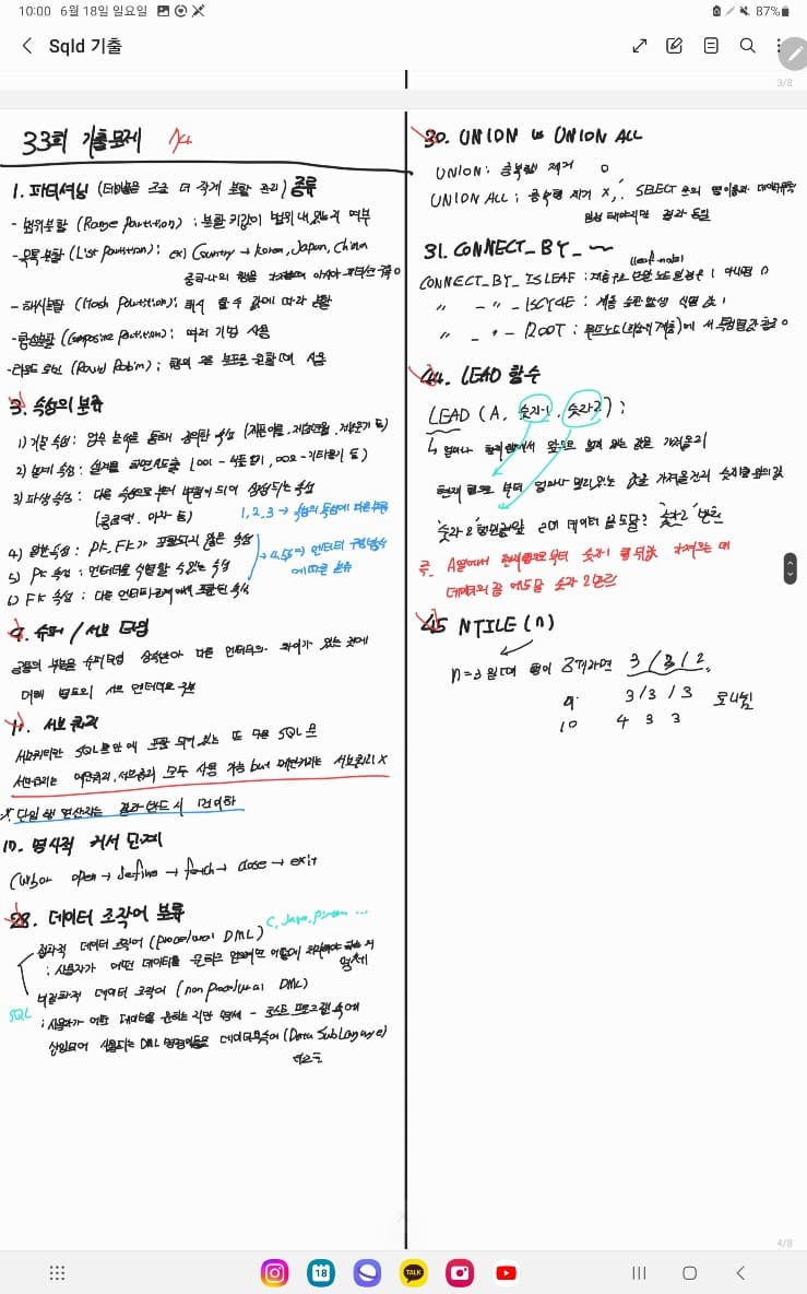 보라색글씨와 형광펜으로 칠한것은 마지막 시험전에 기출에 대한 마지막 복습과 끝까지 봐야할것으로 분류하였습니다.