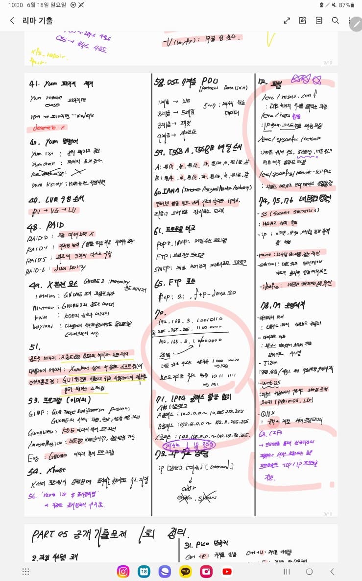 결국 기출을 다시 돌려보고 개념을 마지막까지 시험장에서 (보라색 글씨가 시험장가서 마지막 체크) 점검을 한 결과..
